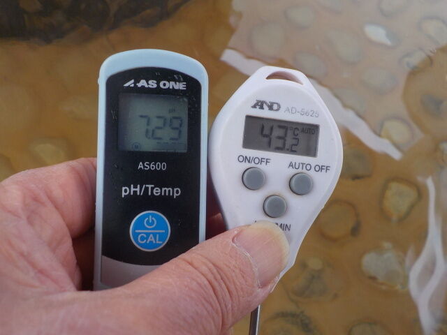 湯口:温度55.3℃、pH7.04、ORP値は87mvに収束した。
