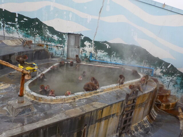 冬期間に温泉に入るニホンザル。12月1日から5月6日までのゴールデンウィークまで見ることができる。