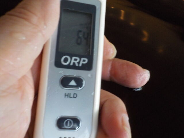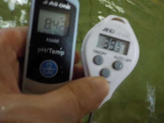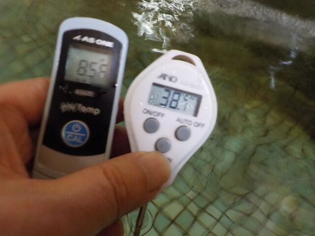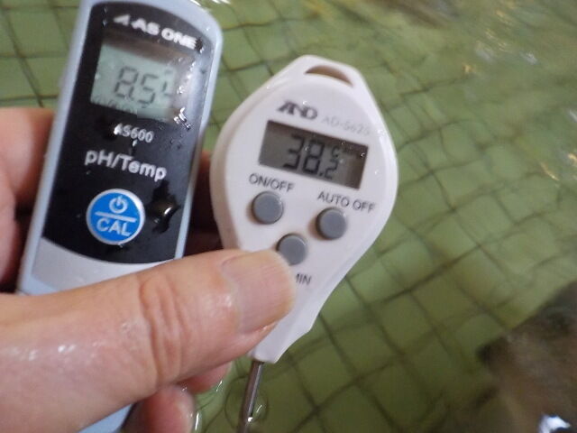 浴槽:温度38.3℃、pH8.22、ORP値は64mvに収束した。