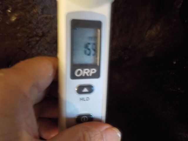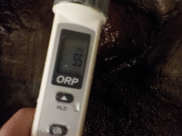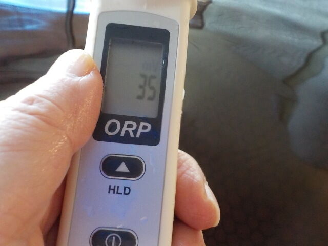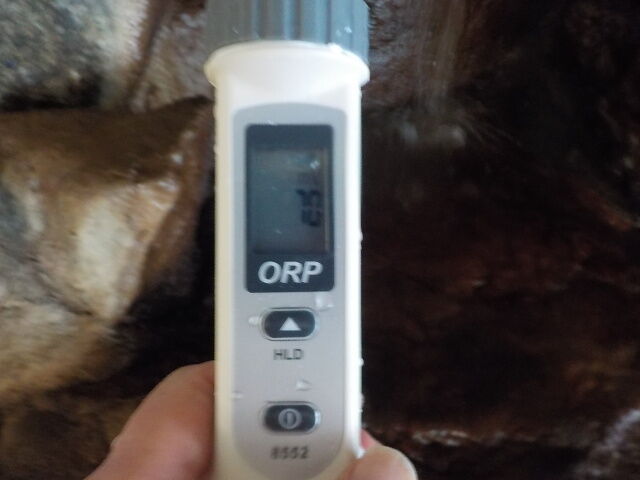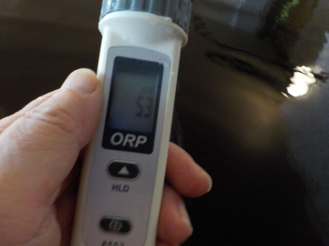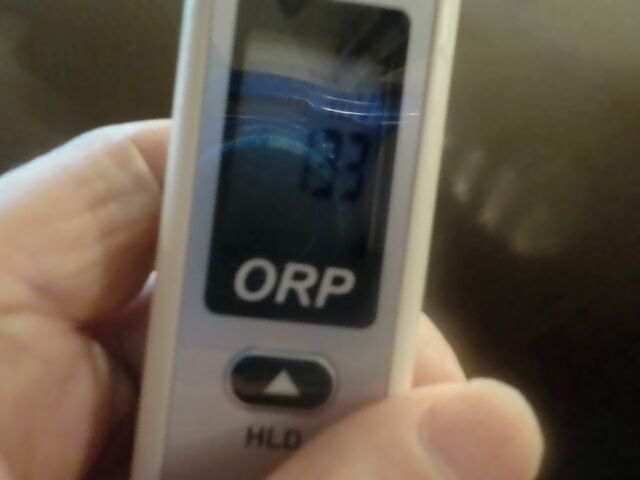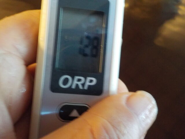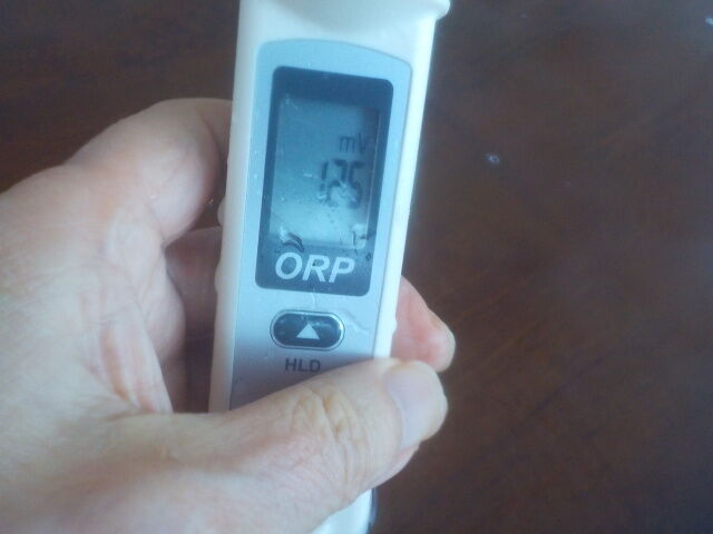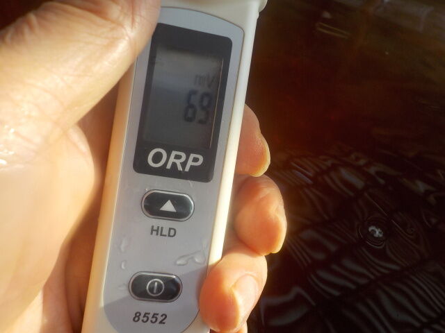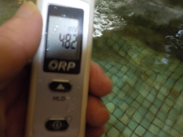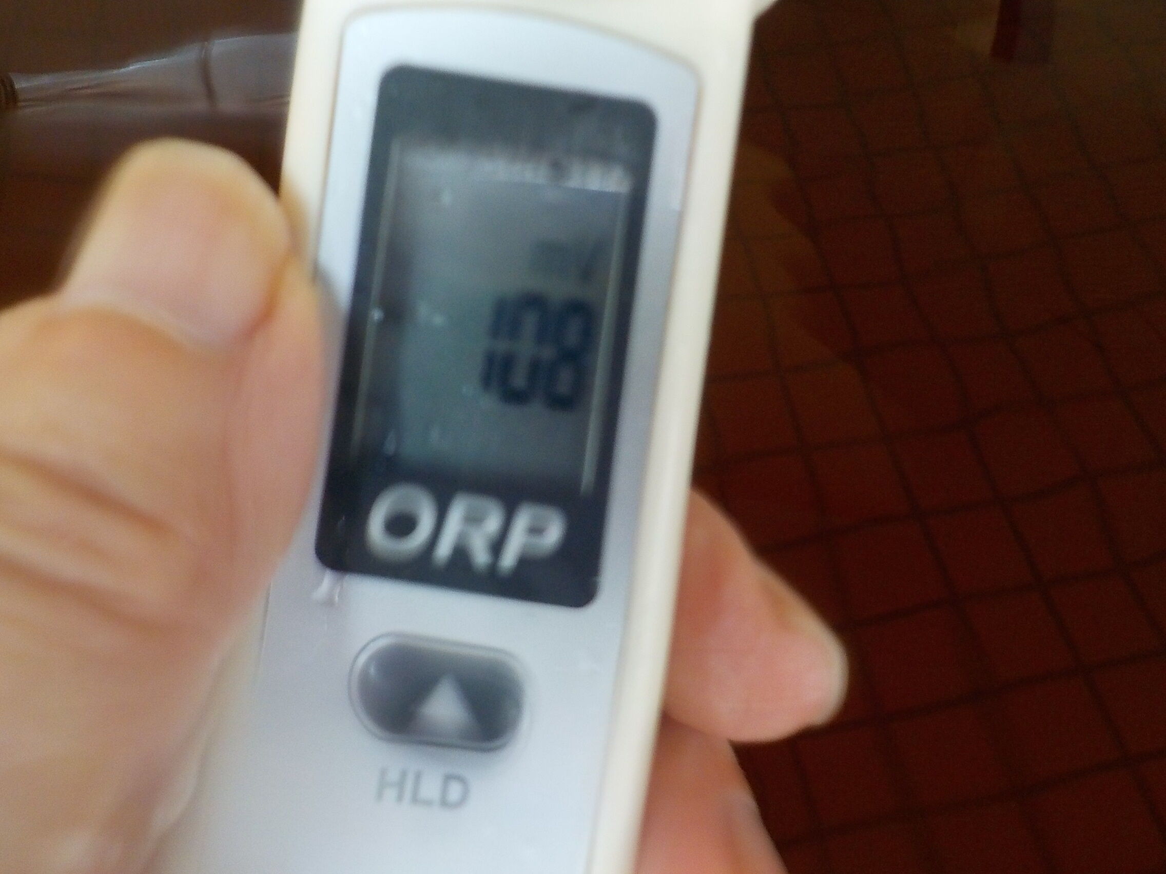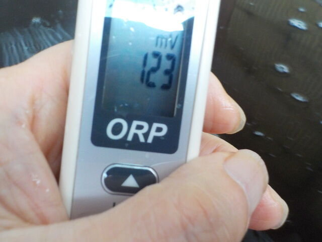 浴槽:温度38.1℃、pH8.56、ORP値は482 mvに収束した。酸化系。
