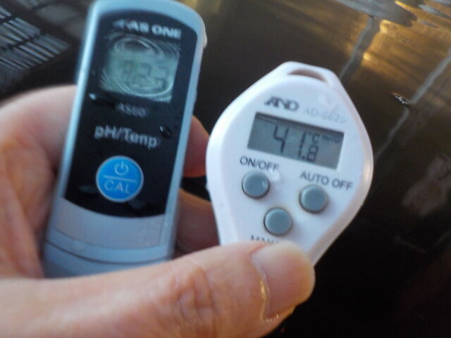 浴槽:温度41.8℃、pH8.23、ORP値は77mvに収束した。