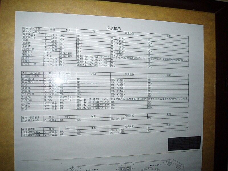 宿泊客は「華のゆ」接続側から出入りする。土足厳禁。サンダルなどは棚に置く。大浴場の利用は無料。
