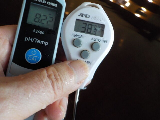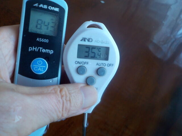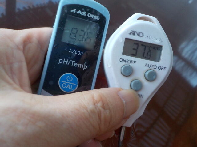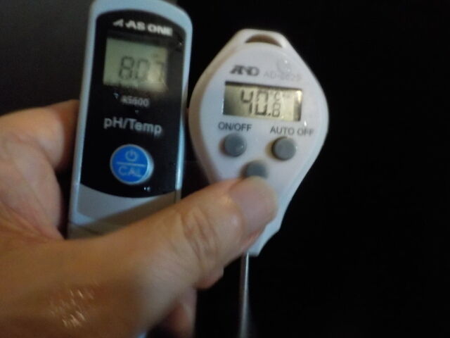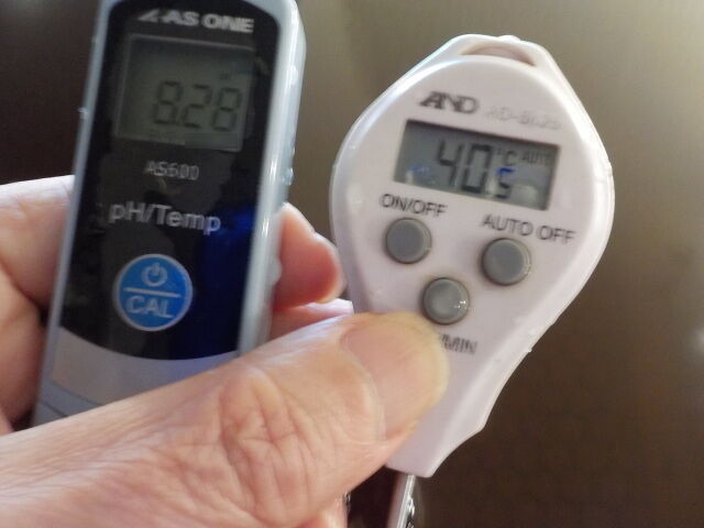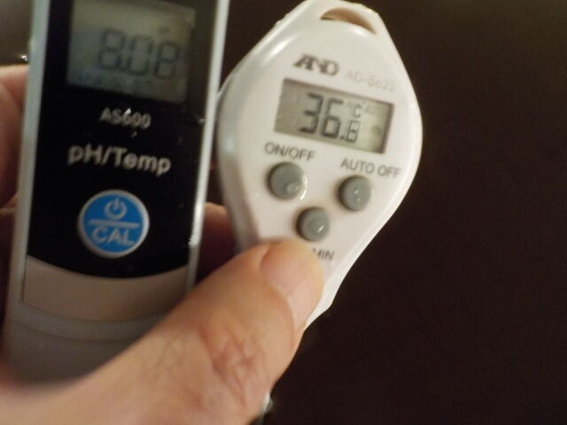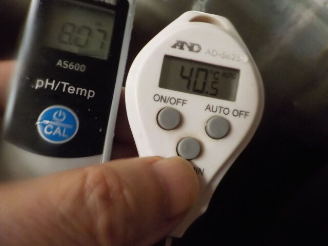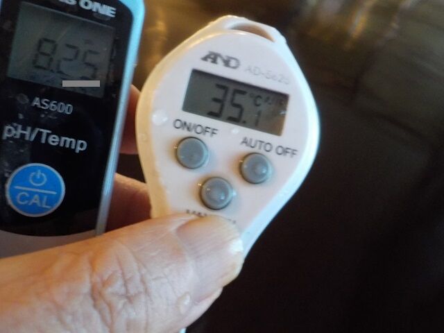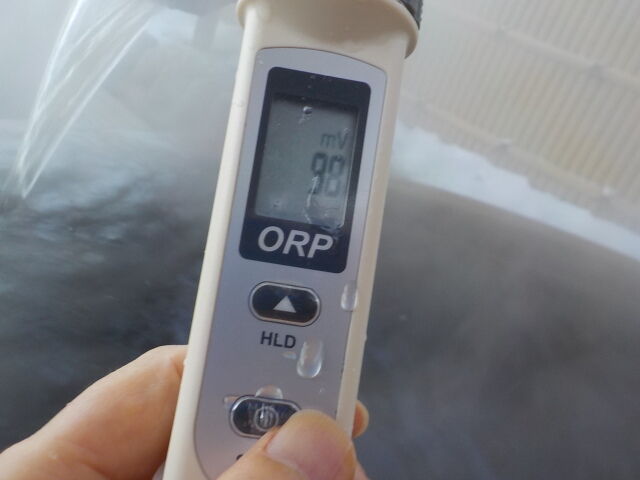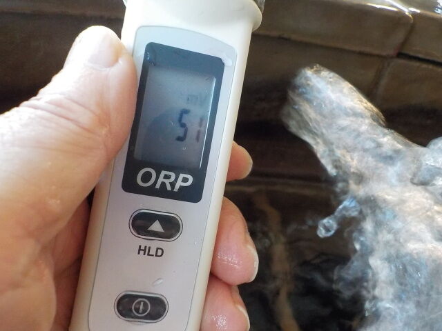 浴槽:温度36.8℃、pH8.08、ORP値は82mvに収束した。