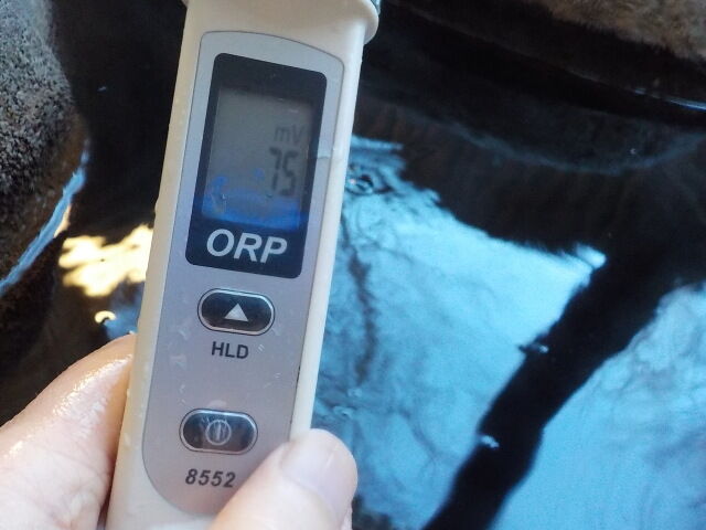 浴槽:温度40.5℃、pH8.07、ORP値は75mvに収束した。