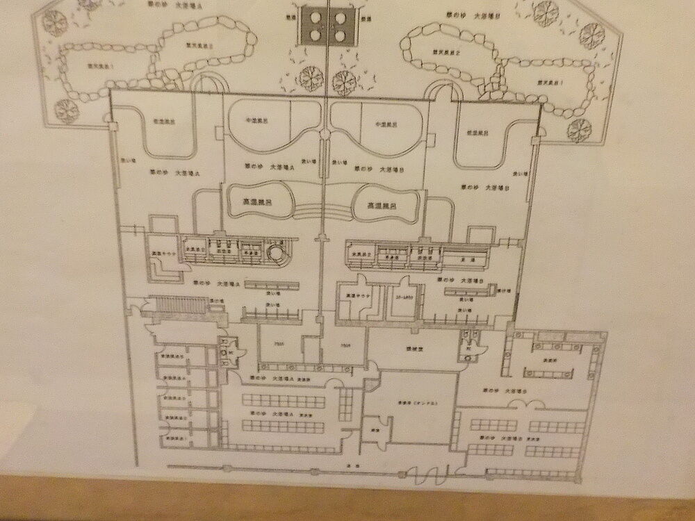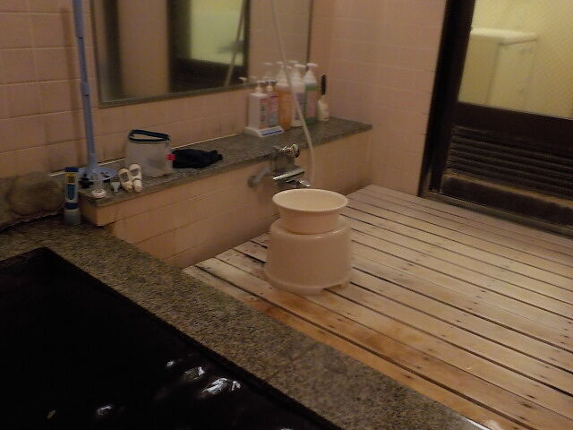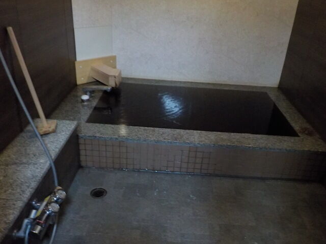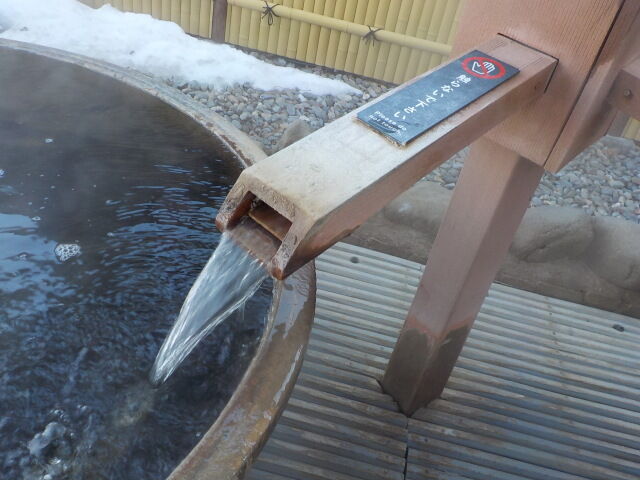 以前は温泉を使用していた。寝湯(3人用)にジェット湯が流れ、湯底に吸込み口2箇所(循環戻り口、ジェット湯戻り口)。循環ろ過方式(塩素系薬剤使用)。