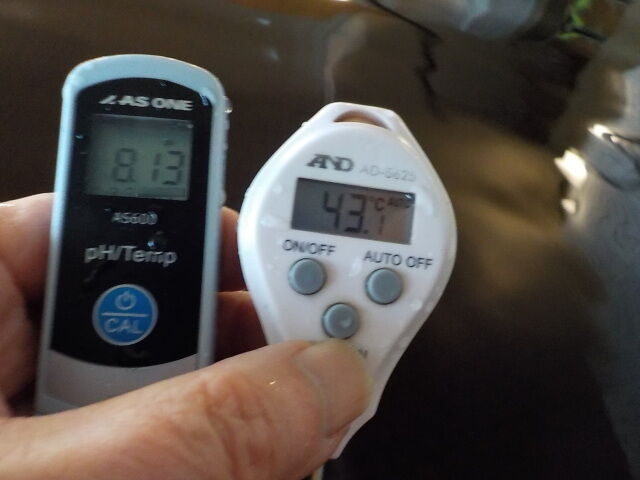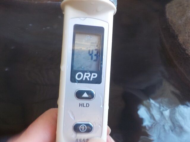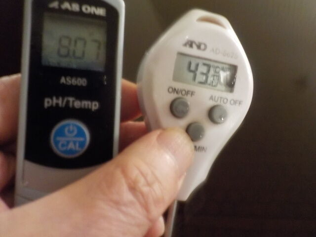 浴槽:温度43.1℃、pH8.13、ORP値は53mvに収束した。