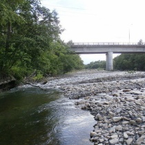 十勝川水系美生川に架かる中美生橋。橋付近の空き地に車を止めて、17時30分頃入渓する。 開始早々、淵に続く流れ込みで20cmのヤマメがヒットする。19時少し過ぎた頃、納竿する前に淵目がけて毛鉤を振ると、29cmの虹鱒が川面を割って出た。 下流に向かって ...