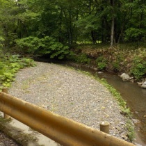 11時40分頃、旭山橋付近の護岸から入渓する。階段式落差工が設けられ、落ち込みには白泡が生じている。あまり期待しなかったが、ヤマメ数匹とミニサイズの虹鱒が水面を割って出た。 次の落差工まで単調な平瀬で川通しに歩く。 ここでもヤマメの生息が確認できた。 ...
