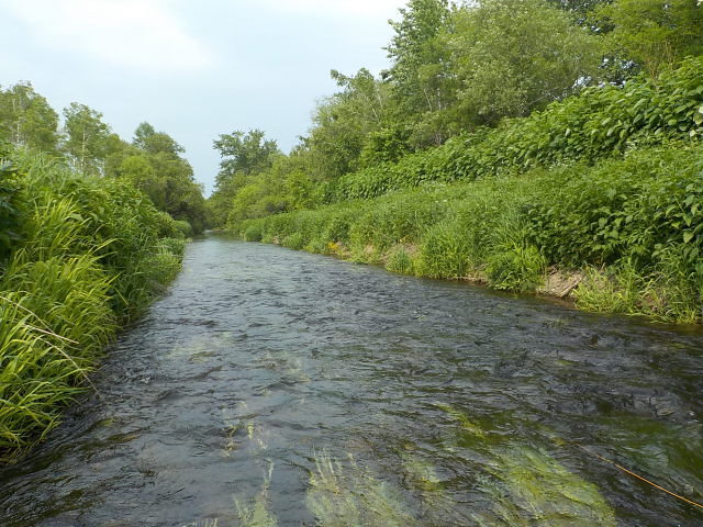 農作業の邪魔にならない場所に車を駐めて猿別川の合流点に向かう。背丈ほどある草を掻き分けて、虹鱒狙いで14時頃入渓した。