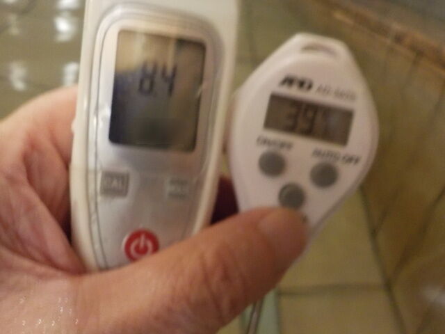 浴槽:温度39.1℃、pH8.4、ORP値は97mvに収束した。