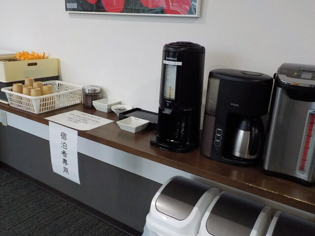 ロビーには、宿泊者専用の無料コーヒーがある。