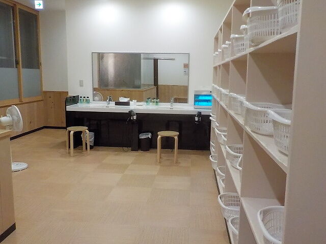 脱衣所前に貴重品ロッカー(100円返却式)あり。