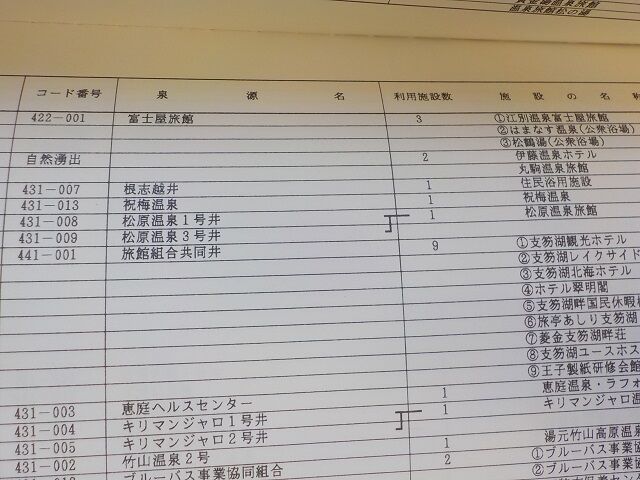 その後、「北海道温泉地熱利用の現状-1998-」では、重曹泉は1号井、食塩泉が3号井に変わっているが、コード番号は同じなので、後で増堀した2号井を3号井に改めたものだろう。