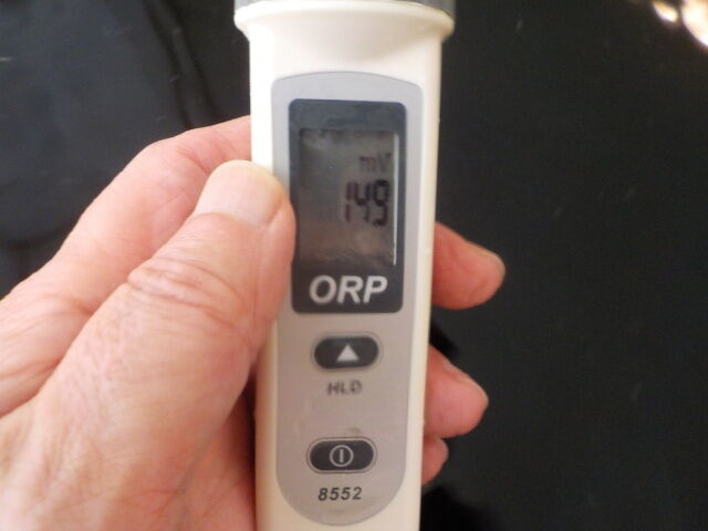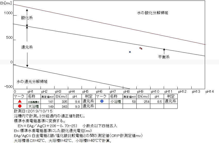 浴槽:温度42.2℃、pH9.3、ORP値は149mvに収束した。