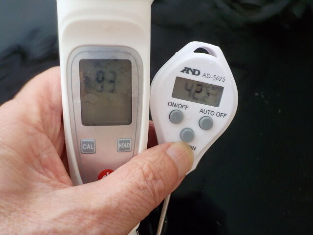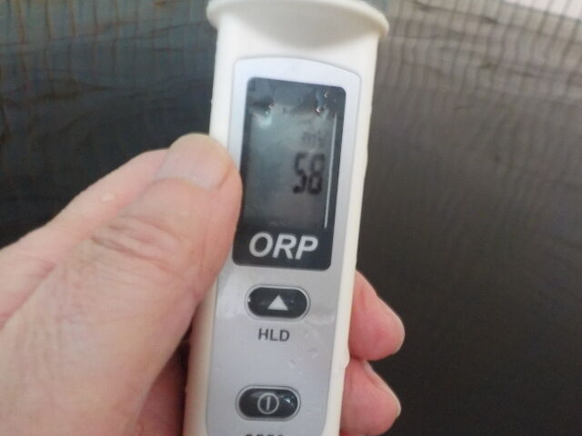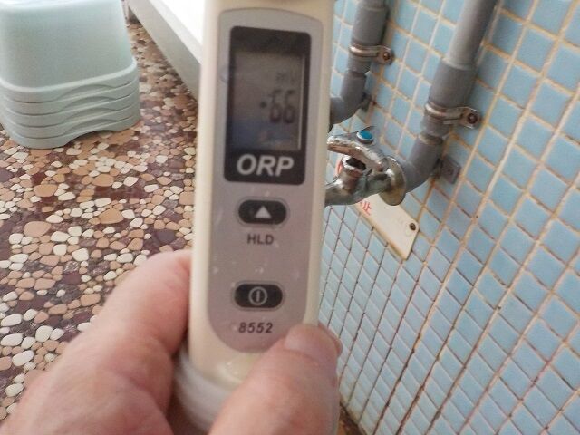 浴槽:温度40.3℃、pH8.5、ORP値は58mvに収束した。