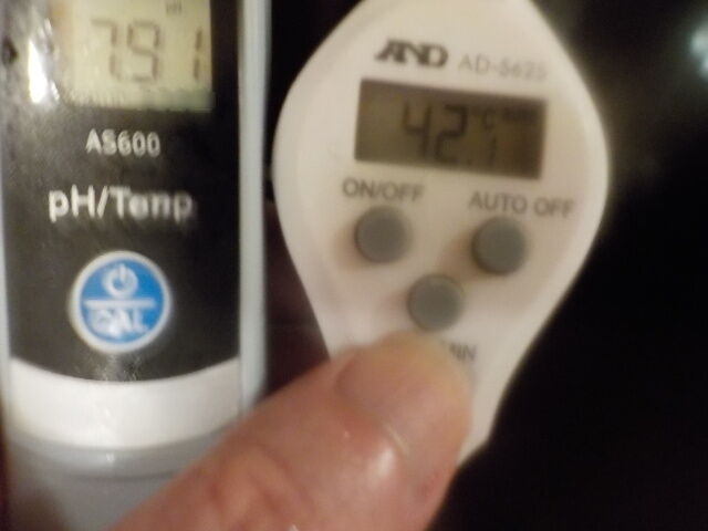 浴槽:温度41.8℃、pH8.18、ORP値は97mvに収束した。