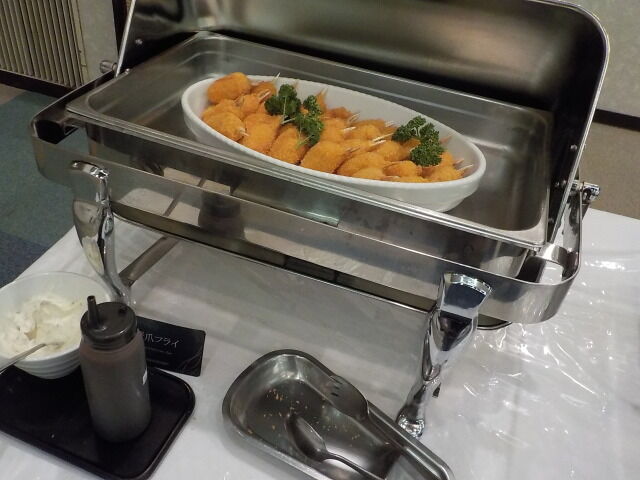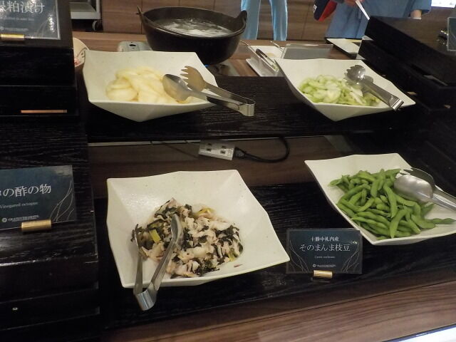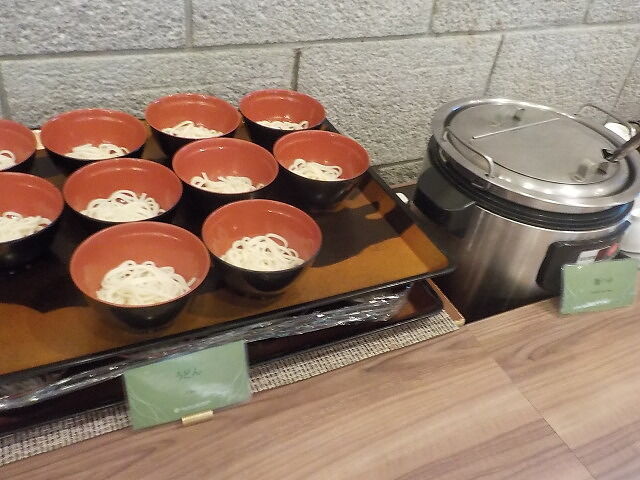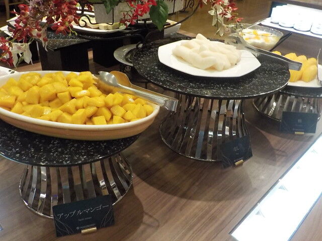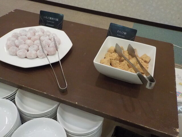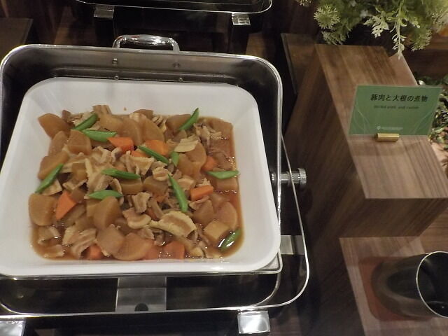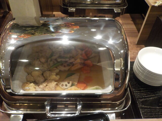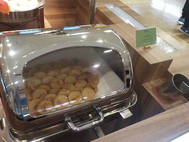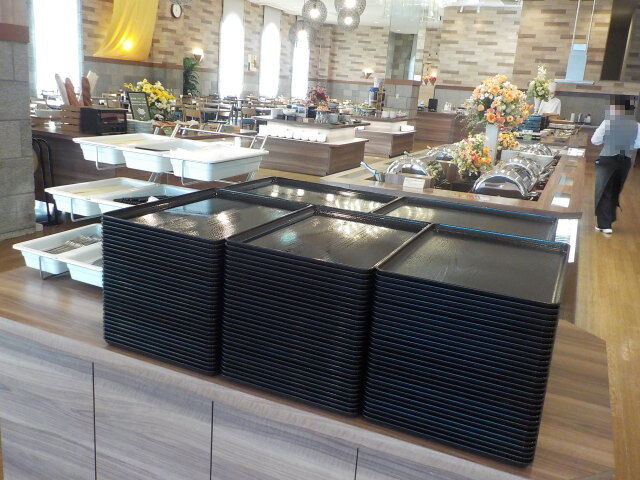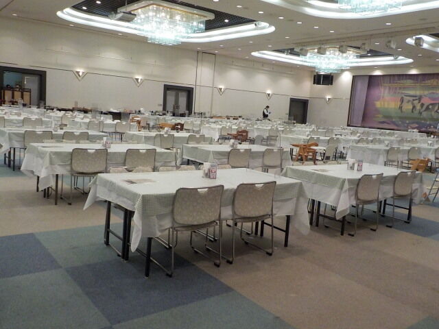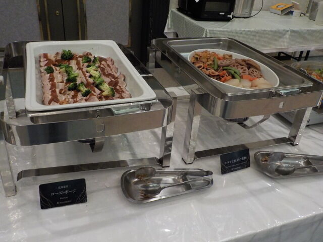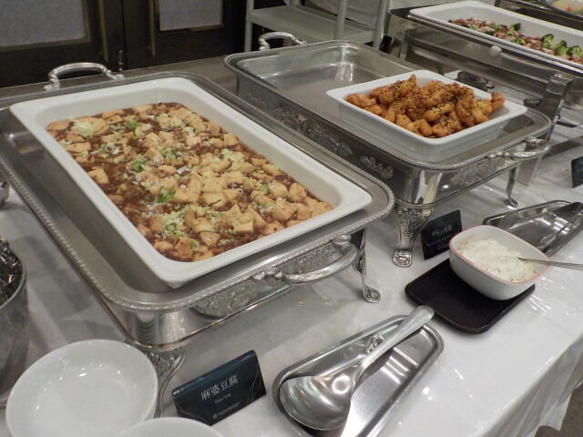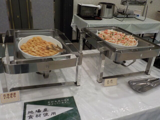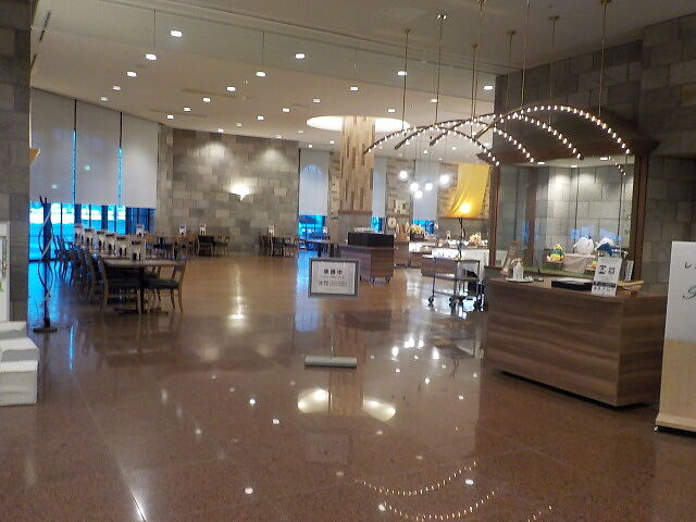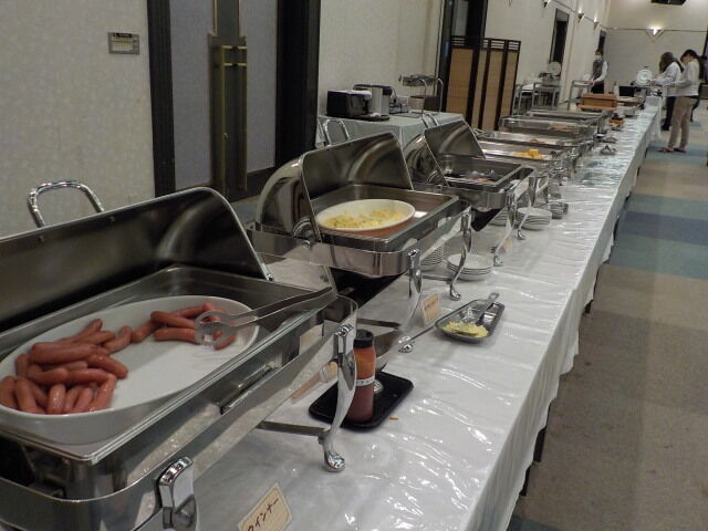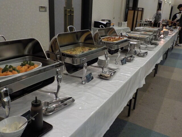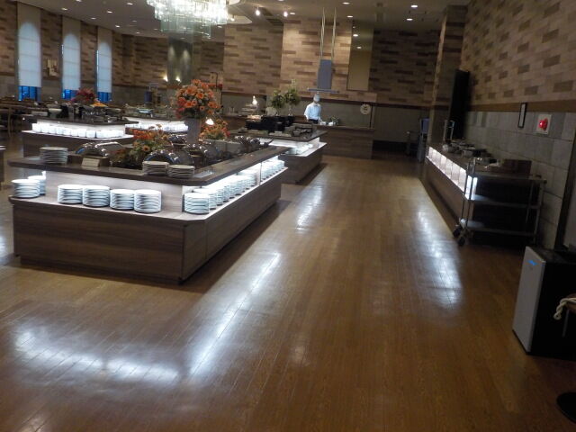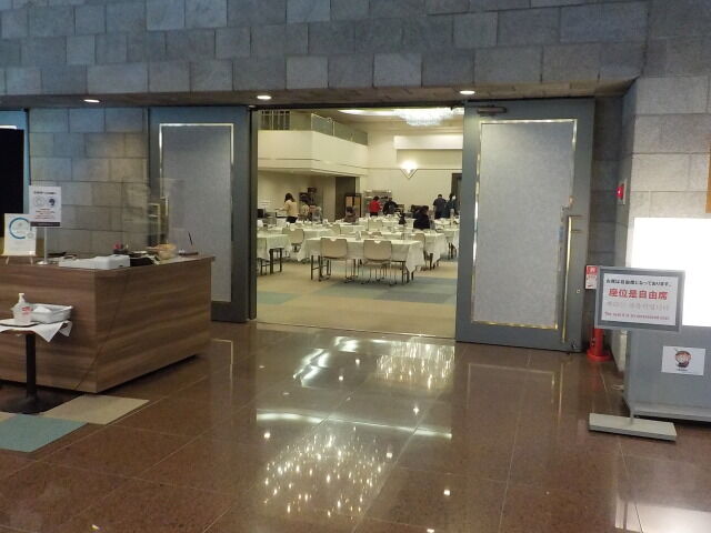 食事は大ホール「メイプル」でとる。夕食は18時~21時、朝食は7時~9時。アルコール消毒・使い捨て手袋着用。当日は、台湾、香港の団体客が多い。