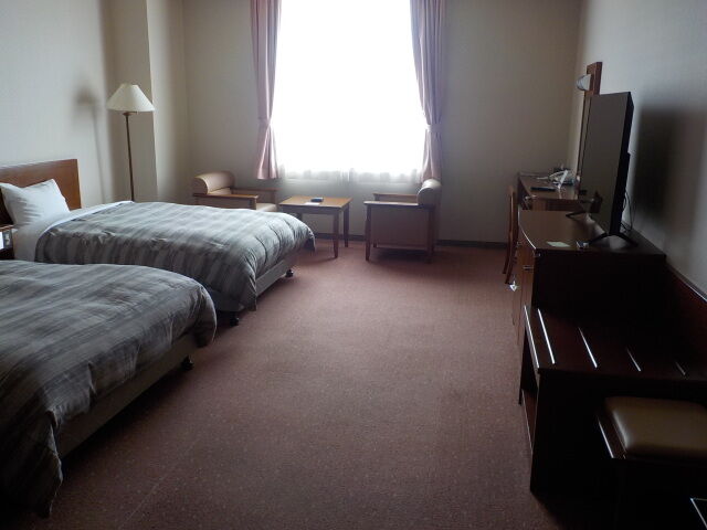 案内されたのは2階エコノミーツイン(喫煙)。オートロック。眺望は期待できない。