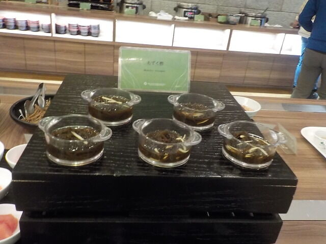 モズク酢、パンケーキ(ライブキッチン)