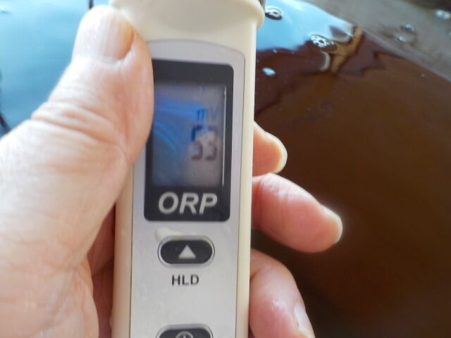 浴槽:温度42.1℃、pH8.13、ORP値は53mvに収束した。