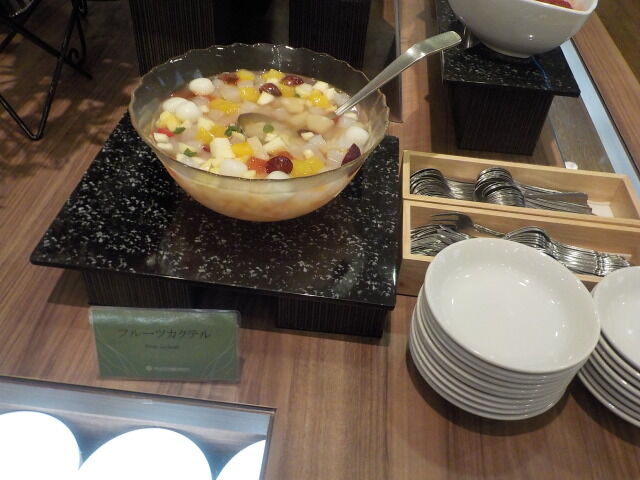 厚焼き玉子・鮭、フルーツカクテル・ヨーグルト