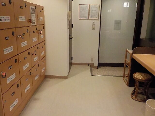 案内されたのは2階バス無し洋室(喫煙限定)。オートロック。眺望は期待できない。