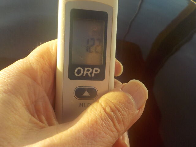 2024/1/15、15時10分~30分、浴槽内でORP計測。源泉(加温)かけ流しで、(利用時)塩素系薬剤未使用。