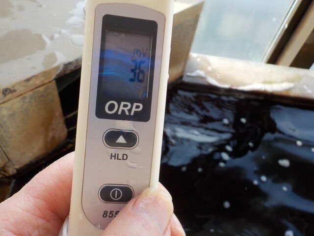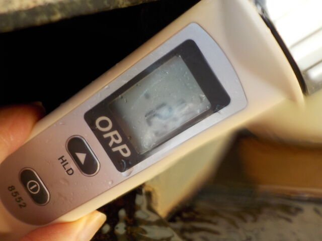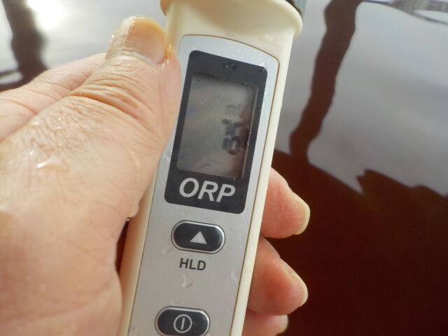 浴槽:温度42.3℃、pH8.14、ORP値は17mvに収束した。