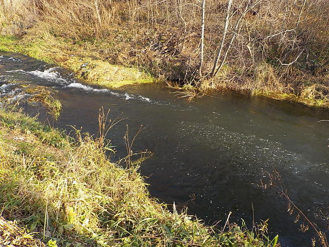 すぐ上流に落差工がある。30分ぐらい粘って、21cmのブラウントラウトを確認した。