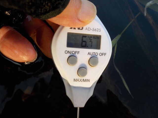 14時31分の計測で水温6.7℃。ヒットフライはビーズニンフ#10(がまかつS11-2L )。