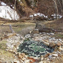 ◎2008年4月・ダム下の湯A2008年4月撮 砂防ダム下の傾斜地を下りていくと、通称・ダム下の湯Aがある。周囲を川石で囲った約2m×2mの大きさで、40cm~50cmほどの深さである。湯の表面には緑藻が繁茂しているので、利用している湯客は少ないようだ。表面の ...